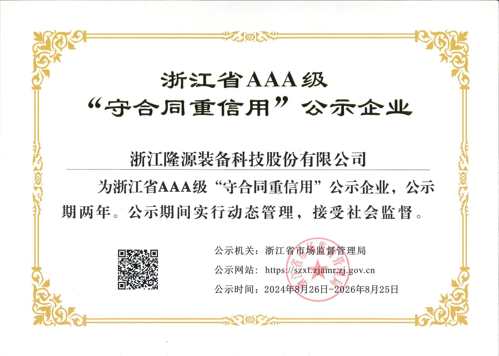 浙江省工商企业信用AAA级“守合同重信用”单位