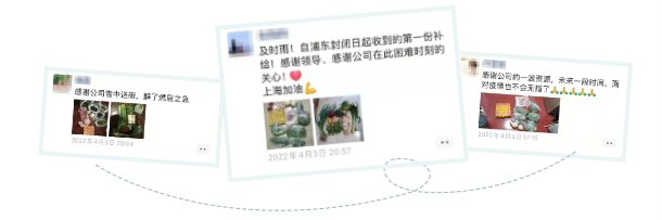 收到公司蔬菜大礼包后不少同事发朋友圈感慨公司解决了燃眉之急,还有同事在群里分享自己的厨艺作品,气氛热烈而温暖。