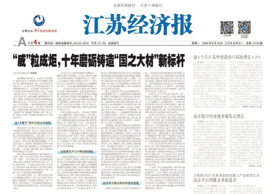 《江苏经济报》头版头条聚焦威拉里:“威”粒成炬,十年磨砺铸造“国之大材”新标杆