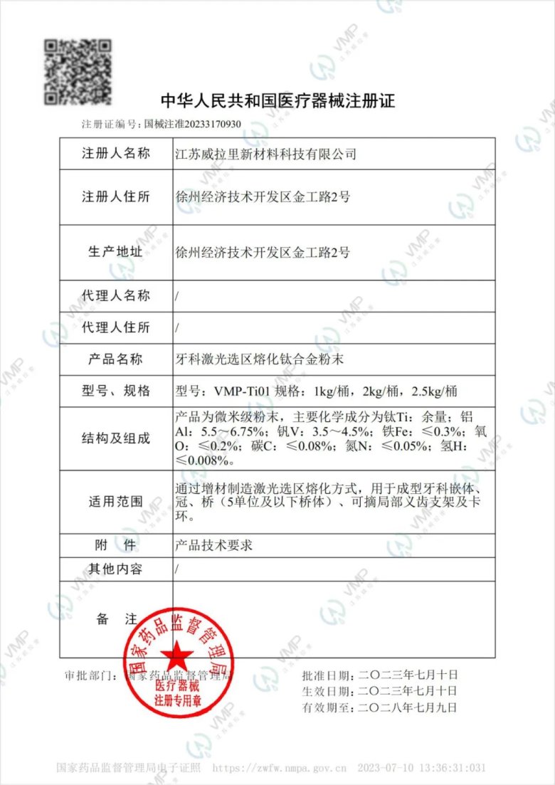 威拉里再获一张国家药监局三类医疗器械注册证