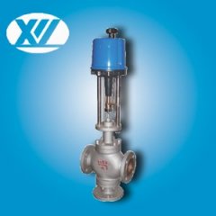 ZDLQ、ZDLX型电子式电动三通调节阀是由3810L系列电子式电动执行机构与三通调节机构组成。电动执行机构内有伺服系统,无需另配伺服放大器,有入讯号及电源可控制运转,连线简单。调节机构有合流和分流两种作用方式,在某此场合可以替代两个二通阀和一个三通接管而得到广泛应用。常用于交换器的两相调节及简单的配比调节。