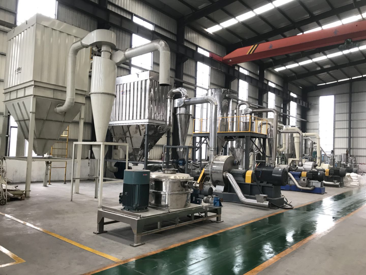 经欣粉碎设备适合于莫氏硬度9以下的各种物料的干法粉碎,尤其适合于高硬度、高纯度和高附加值物料的粉碎;颗粒加速技术突破,粉碎效率提高,能耗低,过粉碎小粒形好,粒度分布窄且无大颗粒等特点,特别适合于磷酸铵盐干粉(ABC干粉)灭火剂的粉碎。