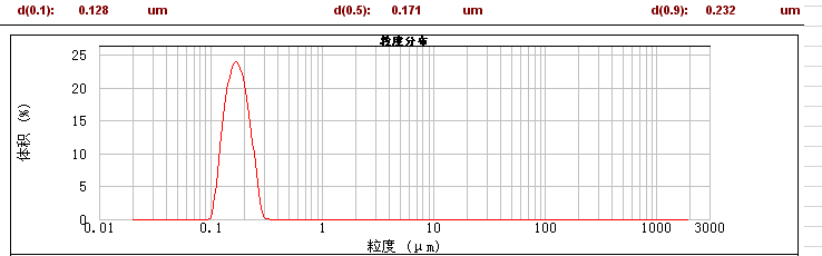 结论: SMLYU机型研磨3小时,达到D50=0.171um,D90=0.232um,D100=0.32um