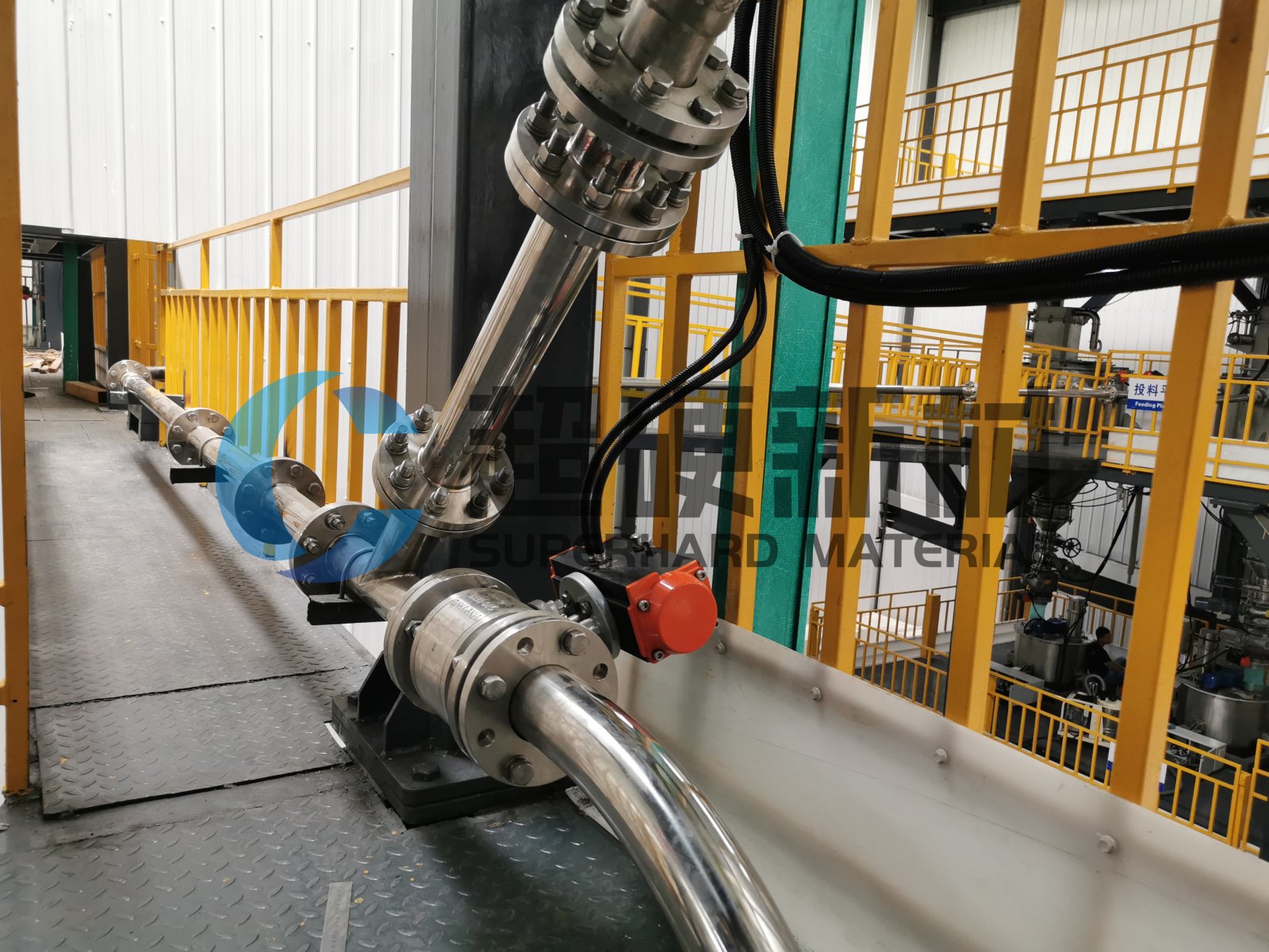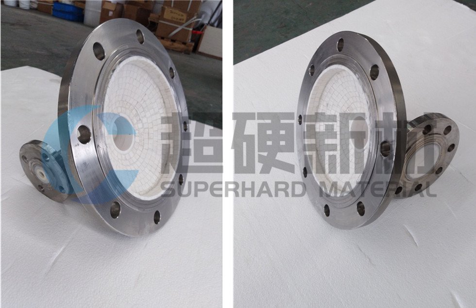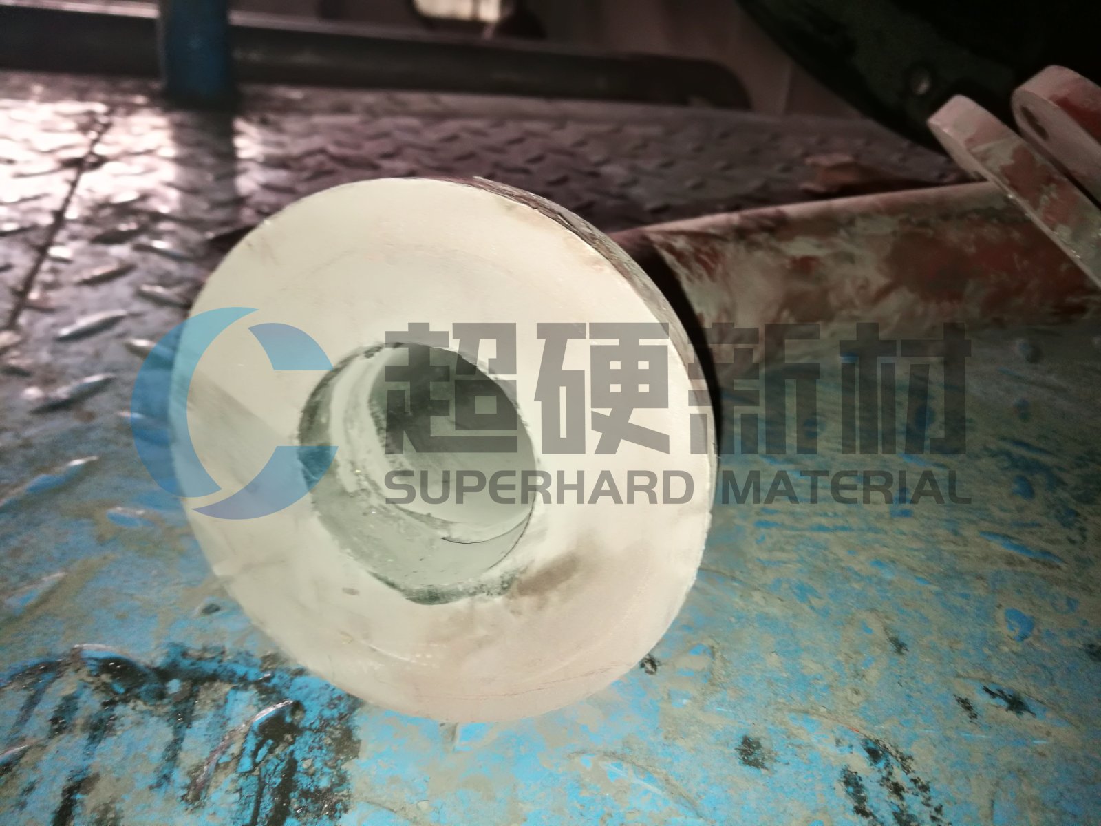 超硬牌整体式耐磨陶瓷管钢件采用304不锈钢整体成型(煨弯,非直管虾米焊接),内壁衬装经1700度整体烧制的95或99高纯氧化铝陶瓷管(市场上90或92瓷居多),陶瓷与钢管层陶瓷专用粘胶填充。与一般陶瓷内衬复合管不同的是,该种管内外壁光滑,气流通畅,磨损极低,耐压、抗腐性好。经实践证明,超硬牌耐磨陶瓷管道在高镍三元产线使用寿命至少在八年以上。