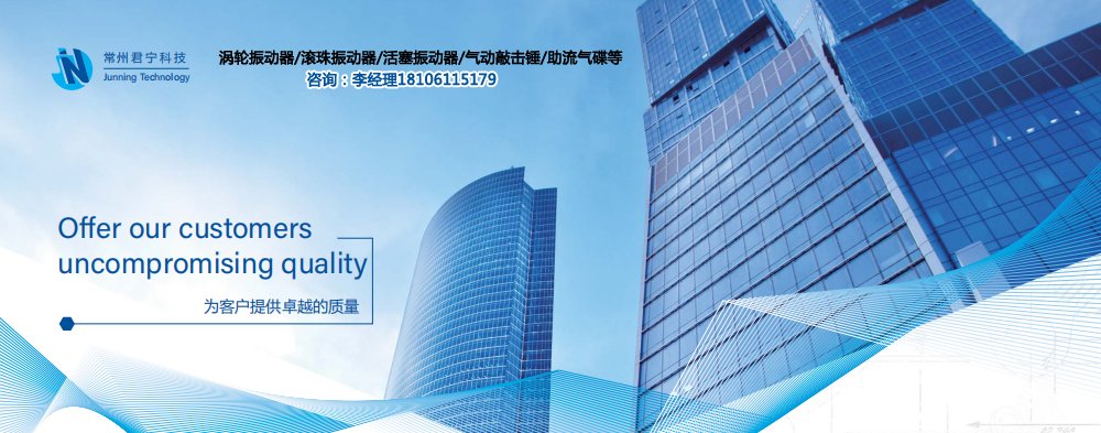 常州君宁科技有限公司是一家专业致力于粉体设备配件研发、自动化设备研发、生产、销售及服务于一体的民营高科技企业。公司团队拥有多年的粉体设备、自动化设备的研发工作经验。我们将为客户提供质量可靠、性能优越的粉体设备配件和自动化设备。我们坚持诚信、质量、性能和服务**结合,客户的满意是我们奋斗的目标。我司将以“一流的产品,一流的信誉”竭诚为您服务。主要产品GT系列涡轮振动器、K系列滚珠振动器、AD10型助流气碟、SK系列气动敲击锤、气锤、NTP系列活塞往复式振动器、气动蝶阀、欧力卧龙MVE振动电机等。