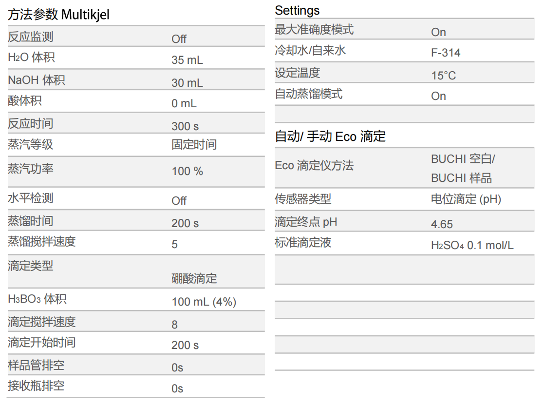 Table 1:蒸馏和滴定的参数