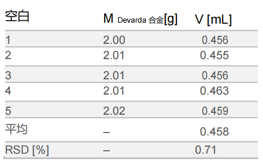 Table 2:空白测定结果
