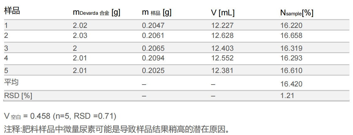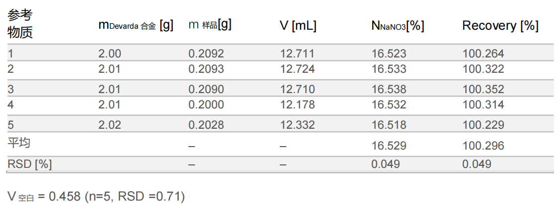 Table 3:硝酸钠中氮的回收结果