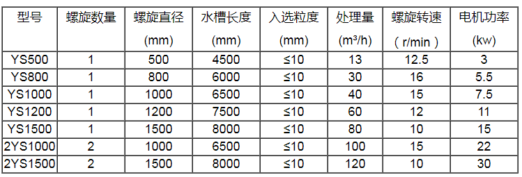 根据国邦官方产品资料显示:YS系列 螺旋洗砂机的功率(kw)为3kw,给料粒度(mm)为≤10,YS系列 螺旋洗砂机的品牌为国邦矿机。