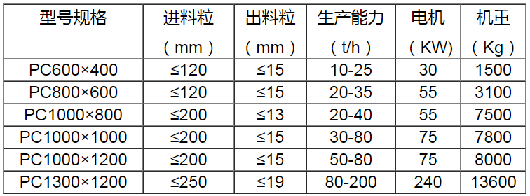 根据国邦官方产品资料显示:PC系列 环锤式破碎机的产量为1500,装机功率(kw)为30,成品细度为≤15,入料粒度(mm)为≤120,工作原理为其他,粉碎程度为其他,PC系列 环锤式破碎机的品牌为国邦矿机。
