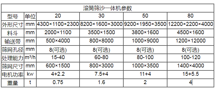 根据国邦官方产品资料显示:20型 滚筒筛沙一体机的工作原理为振动式,装机功率为4+2.2kw,处理量为15-40,20型 滚筒筛沙一体机的品牌为国邦矿机。