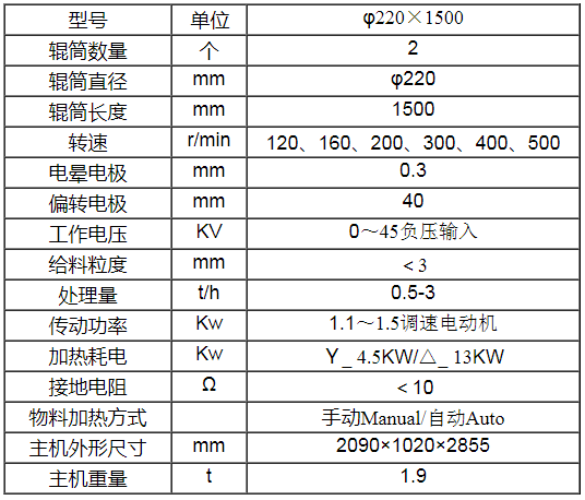| 型号: | φ220×1500型 双辊筒高压电选机 |