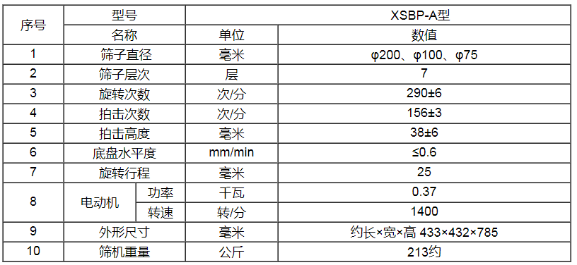 | 型号: | XSBP-A型 拍击式振筛机 |