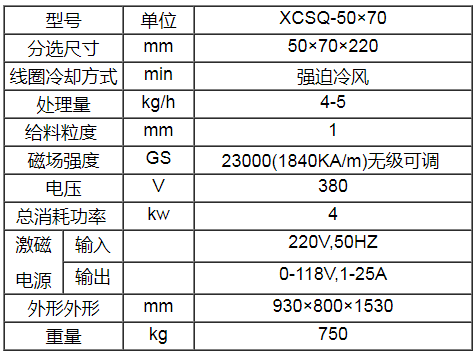 | 型号: | XCSQ-50×70型 湿式强磁选机 |