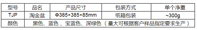 石城县国邦矿山机械有限公司为您提供国邦矿机TJP型 手摇淘金盆,TJP型 手摇淘金盆产地为江西,属于其他选矿设备,除了TJP型 手摇淘金盆的参数、价格、型号、原理等信息外,还可为您提供鹅卵石锤式打砂机240/500破碎机、多功能复合式破碎机 制砂机设备、卧式离心选矿机SLon离心选矿设备,国邦客服电话400-810-0069转3458,售前、售后均可联系。