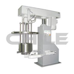 液 压升降篮式研磨机电机运转带动拨杆和底部分散盘高速旋转,使分散盘上部及篮腔内部形成真空,浆料被吸入篮式研磨腔内。拨杆驱动腔内的研磨介质产生向各个方 向的力,物料中的颗粒受到介质不断地碰撞及摩擦,粒径变小,粒径范围变窄;分散盘的高速运转,产生涡流将腔内物料抽吸出来,再循环至进料,具有非常显著的 分散混合效果,通过液压泵工作驱动液压柱塞升降,带动整个传动机构和研磨装置升降。
