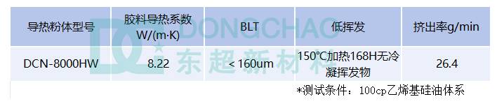 8.0W/(m·K)低挥发导热凝胶专用导热粉(DCN-8000HW)BLT<160um且具有搞挤出、抗开裂、抗滑移性能解决方案