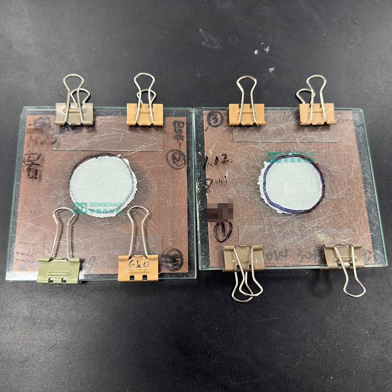 性能验证DCN-8000HW导热粉体具备优异的稳定性与可靠性:该粉体不仅与硅油相容性优异,可实现高填充量下的顺畅加工,同时具备良好的抗开裂、抗滑移性能(图一),保障导热凝胶长期使用过程中的结构稳定性。经东超新材实验室严苛测试,将导热胶料置于150℃高温环境下持续烘烤168小时(模拟高端电子设备长期工作工况)(图二),测试后玻璃罩与杯壁均无冷凝挥发物析出,充分验证了其低挥发特性,可稳定满足安防监控等对导热界面材料低挥发、高稳定的技术需求。