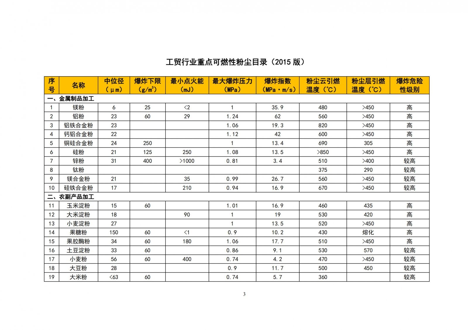 工贸行业重点可燃性粉尘目录2015版-徐州众安工业装备有限公司