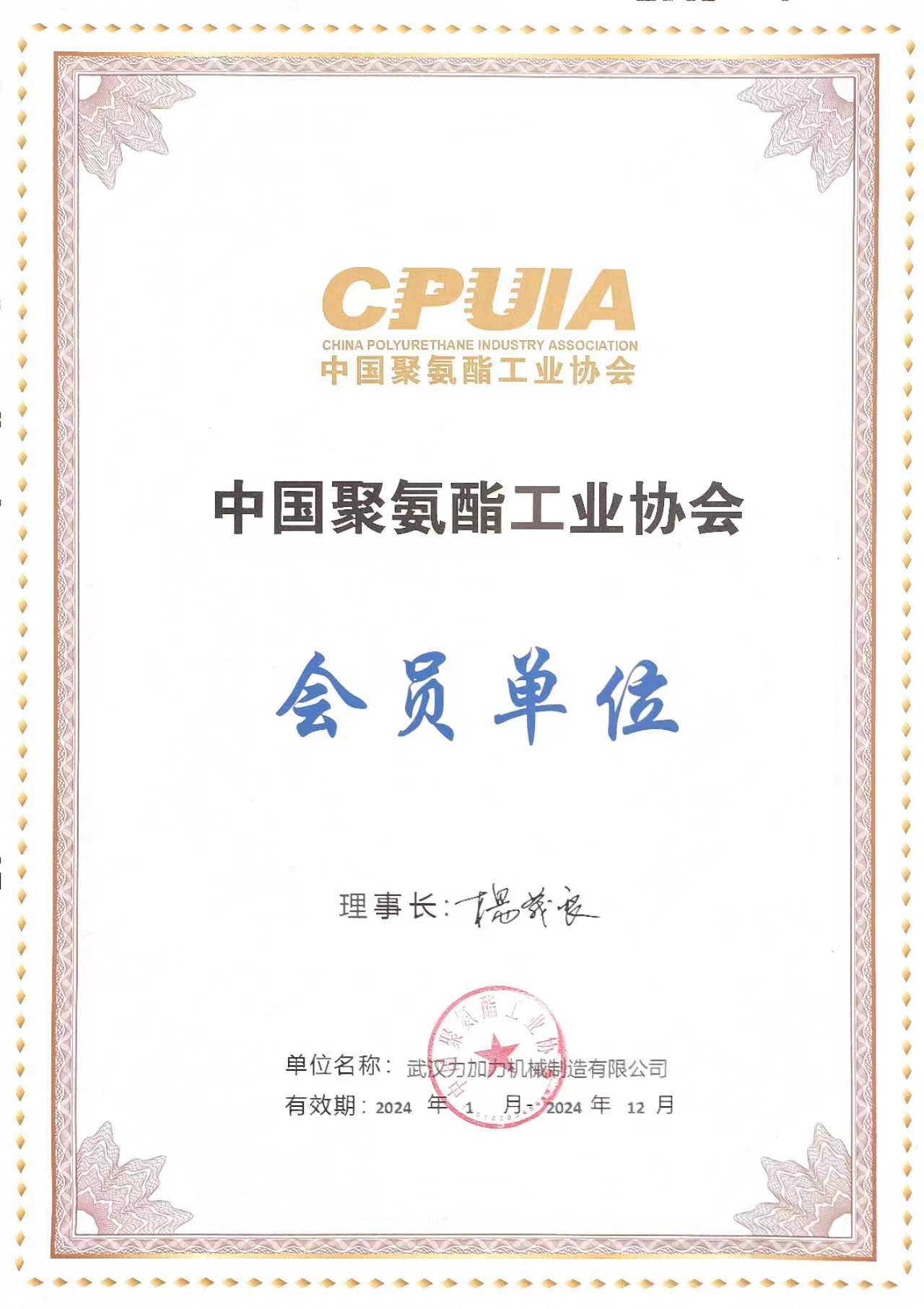 2024年中国聚氨酯工业协会会员单位证书