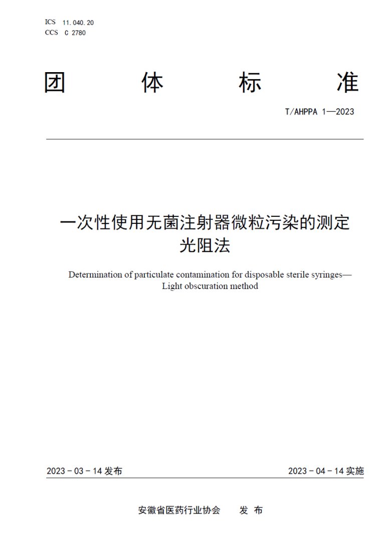 近日,天津天河分析仪器有限公司参与起草的团体标准《T_AHPPA 1-2023 一次性使用无菌注射器微粒污染的测定 光阻法》和《T_AHPPA 2-2023 一次性使用无菌血袋微粒污染的测定 光阻法》由安徽省医药行业协会正式发布。