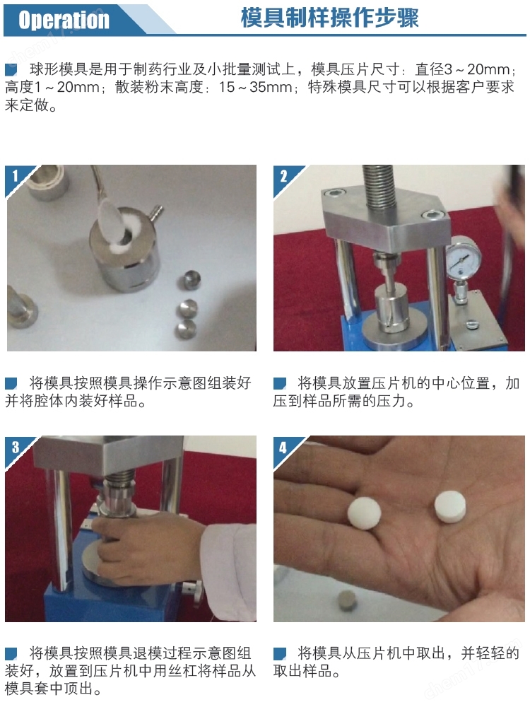 适用物料:配合压片机使用,可将溴化钾、氯化钠、二氧化硅、氧化铝、氧化锆等各种粉末材料压制成型