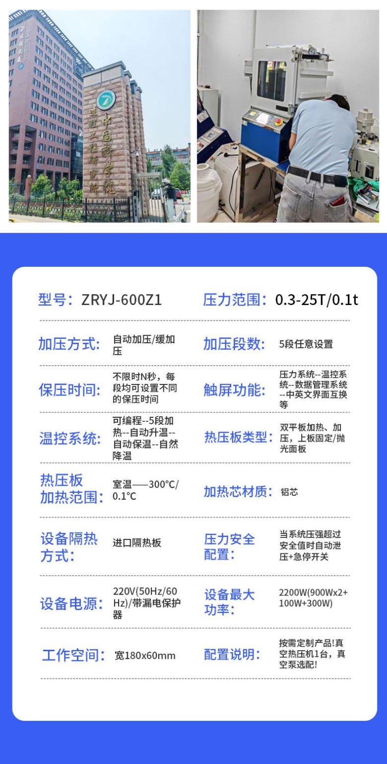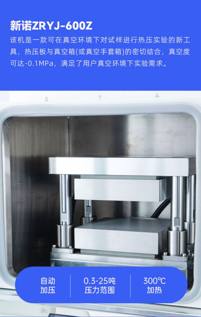 该机是一款可在真空环境下对试样进行热压实验的新工具,热压板与真空箱(或真空手套箱)的密切结合,真空度可达-0.1MPa,满足了用户真空环境下实验需求。