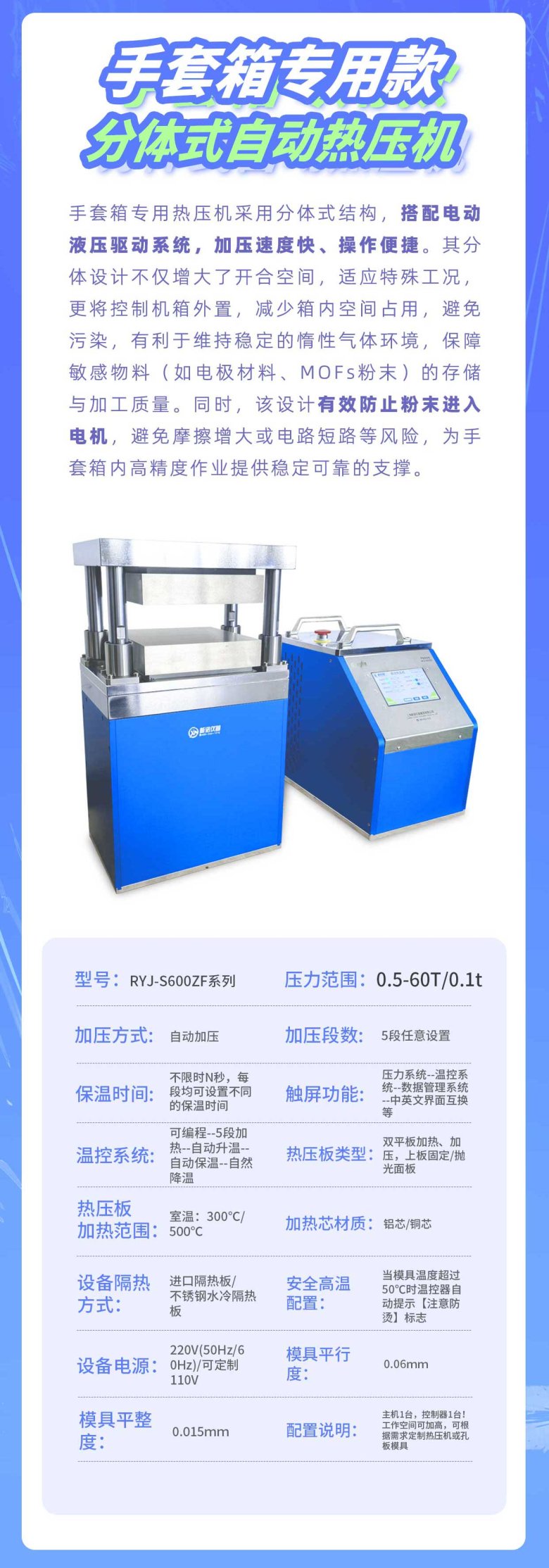 手套箱专用款分体式自动热压机