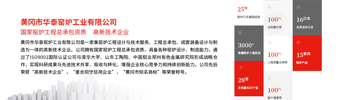 黄冈市华泰窑炉工业有限公司成立于2000年,是一家集窑炉工程设计与技术服务、工程总承包、成套装备设计与制造为一体的高新技术企业,公司拥有国家冶金工程施工贰级总承包资质,具备各种窑炉设计、制造能力,具有健全的****国际认证体系和安全体系。获得过湖北省“专精特新”企业、制造业单项冠军企业、科技型中小企业、省级工业设计中心企业。窑炉主营产品有高温节能隧道窑、辊道窑、梭式窑、日用瓷及建材窑炉、玻璃熔窑、双通道隧道窑、冶金碳化炉、焦炉、热处理炉等。在5G新材料,氧化镓、气氛保护推板窑、隧道窑,石墨坩埚燃气隧道窑、电加热窑,负极电子陶瓷、装卸料系统、电子真空管、电子元器件等多种新式技术上都取得了成功突破