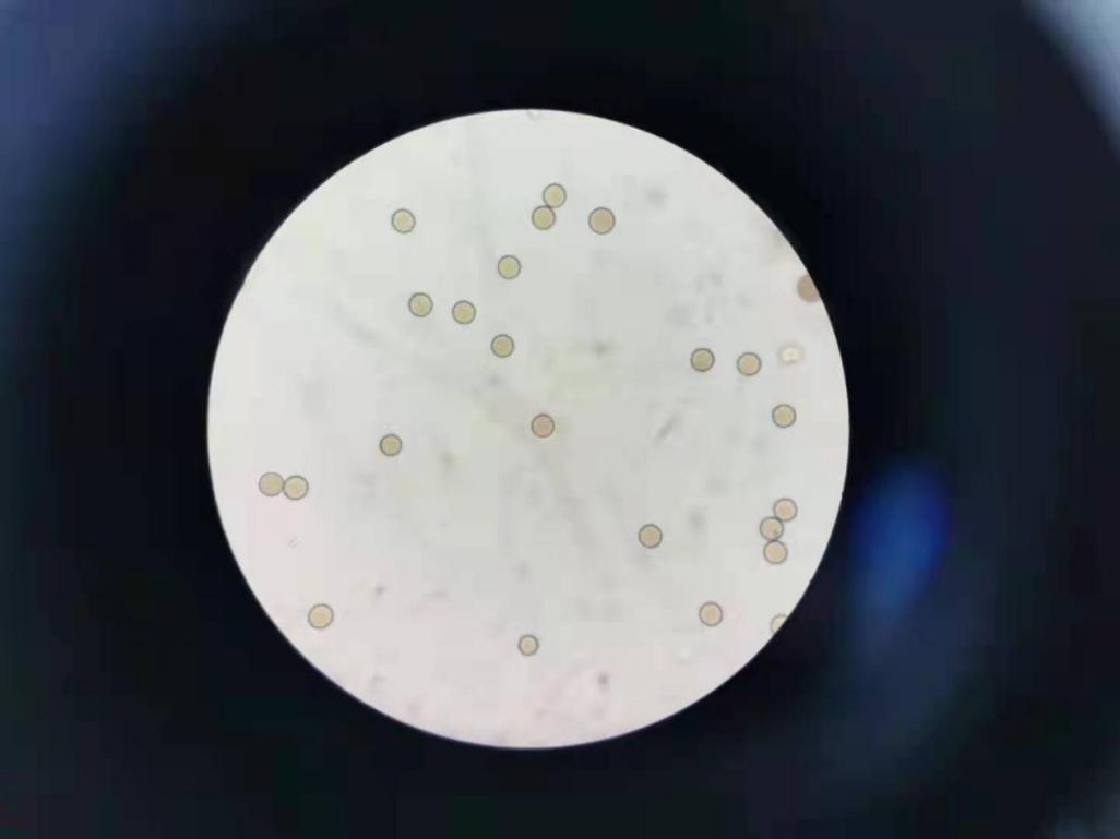 可见很均一的微球,大小在10um和30um左右