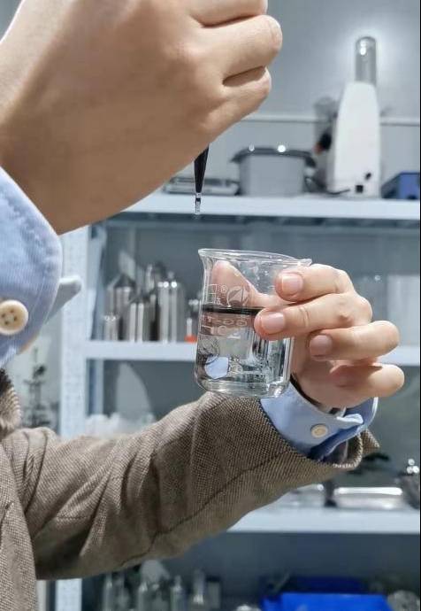 2、取少量加入水中检测分散效果,发现碳管液细丝状分散,无颗粒感,实验结果表现优良。