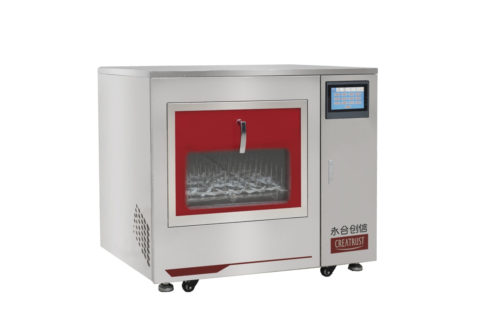 用途:CTLW系列玻璃器皿清洗机可以对实验室常用实验器皿(量瓶、色谱自动进样瓶、锥形瓶、烧杯、比色管、试管、移液管、试剂瓶、圆底烧瓶、量筒、培养皿等)进行清洗、消毒、干燥全自动处理。