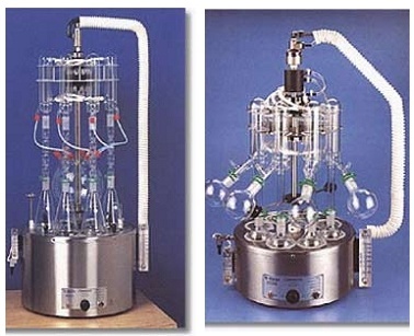 平行蒸发仪整套装置由水浴加热系统、溶剂回收系统、真空系统(选配)组成。溶剂回收系统直立于底座之上,并可自由旋转,操作者可以方便的安装或者取下装置背面的样品。溶剂瓶置于水浴加热系统之中,可直接用于回收沸点为65℃的溶剂,配合专用真空系统后可用于回收沸点高达90℃的溶剂。圆形不锈钢水浴温度可调节并可控制,在30℃~100℃的温度范围内可准确保持恒定水温。