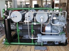 中高压压缩机,系采用国外先进技术。压缩机由柴油机或电动机驱动,冷却方式有水冷、风冷、混冷,排气量为3~30m3/min,排气压力可达5.0~40MPa,品种有车装、撬装和固定式等,主要适用于油田开采中的管道试压、扫线、气举等工程。随着油田新工艺的发展,用户对该系列产品排气量的要求越来越大,我公司又开发了大排量螺杆-活塞串联复合式高压压缩机,用于石油开采、航天、航空、国防工业等工艺用高压气源站。