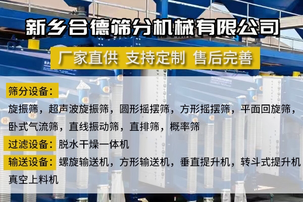 新乡市合德筛分机械有限公司是从事筛分设备和输送设备的研发,生产,制造,销售,售后为一体的综合性公司,主要产品有三次元振动筛,超声波振动筛,圆形摇摆筛,方形摇摆筛,平面回旋筛,卧式气流筛,直排筛,过滤干燥一体机等等振动机械。我公司技术力量雄厚,生产设备齐全、检测设备完善,有丰富的设计,制作,调试振动设备的经验,致力于为客户提供多种振动筛产品和完善的服务,服务团队365天全天候为您提供及时,规范的服务。 我公司采用科学严谨,灵活的管理制度,以公司稳步发展为基础,不断吸收和引进优良的技术和管理,建立和健全了完善的质量保障体系,同时公司高度重视技术进步和新产品的开发,并与有关设计研究院