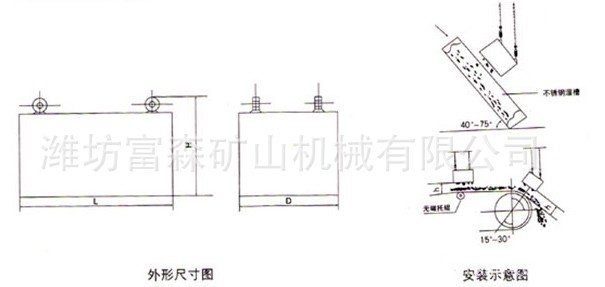 本机与皮带输送机、振动输送机、电磁振动给料机、下料溜槽等输送设备配套使用,清除夹杂在散状物料中0.1-25公斤的铁磁性物质。